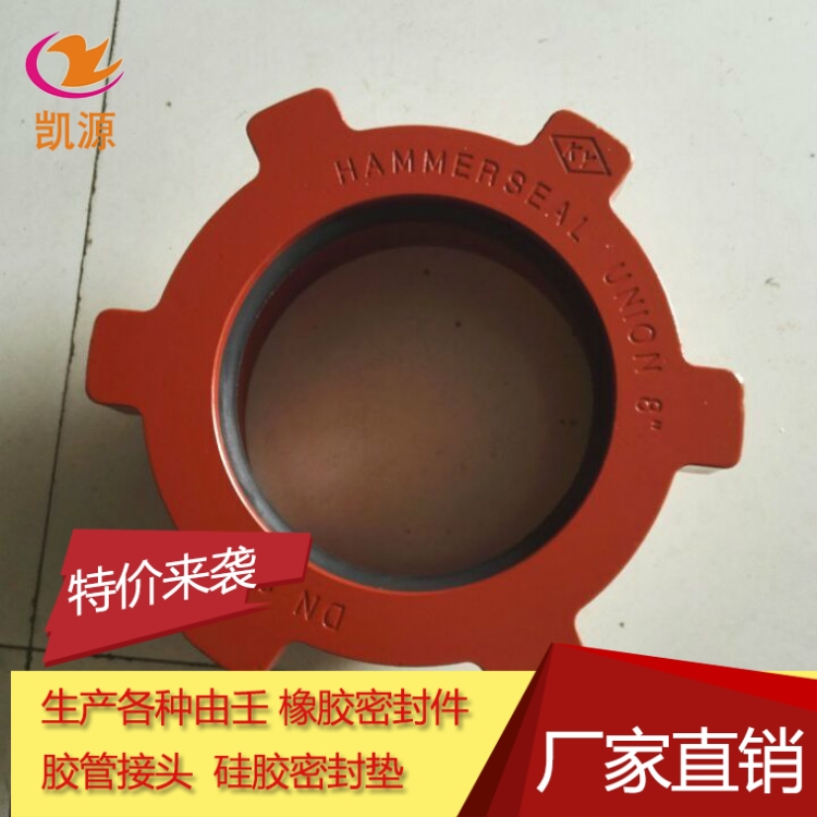 衡水凯源石油机械有限公司生产的锤击由壬广泛用于大通径、中低压、错位大.拆卸频繁的管路连接。管路对中要求低,错位大不影响管线的连接和密封,完美实现了快速安装与拆卸的特殊要求。尤其适用于石油钻井液固控系统中泥浆罐之间的快速连接与拆卸,使用方便,连接快捷对于减轻工人的劳动强度,缩短建井周期,具有十分重大的意义。连接管线可采用玻璃管,或两端带接头的胶管,玻璃钢管耐腐蚀,质轻易搬运,胶管可弯曲,适用于现场管线错位安装 。